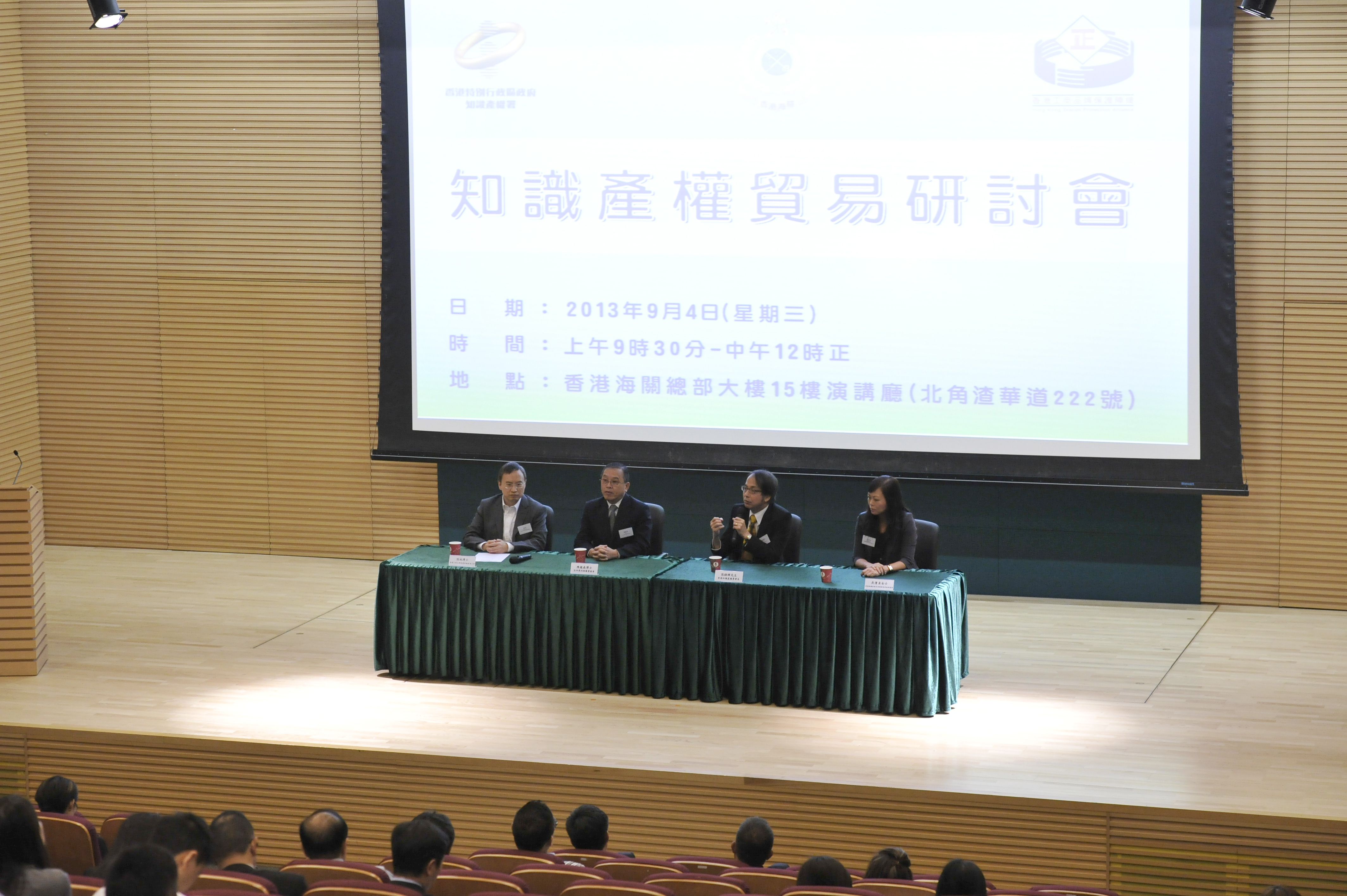 香港海關、知識產權署及陣綫於2013年9月4日聯合舉辦「知識產權貿易」研討會,分享有關知識產權的課題,讓香港企業更加瞭解知識產權貿易在香港的發展及機遇。